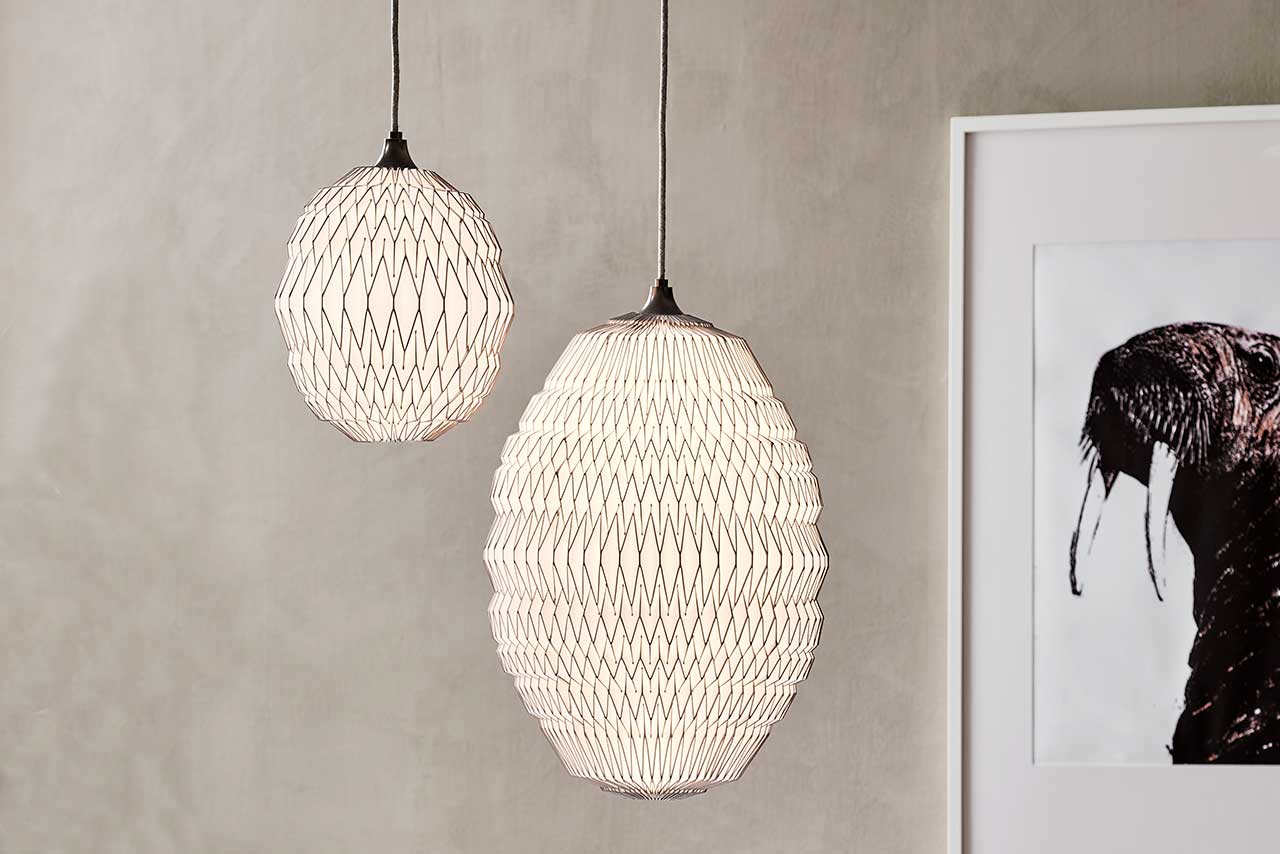 Designer Rikke Frost skabte en lampe med både velkendte og nyfortolkende elementer med stor respekt for det danske, traditionsrige foldehåndværk.