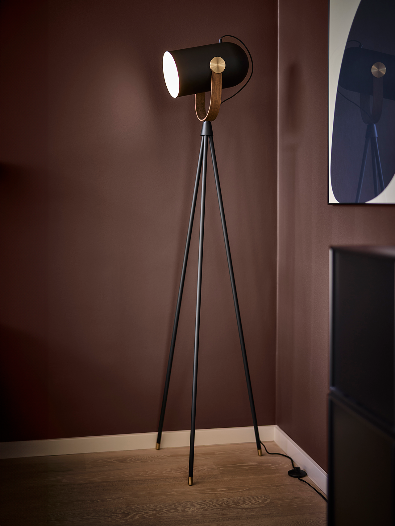 Den nye Carronade II kollektion lanceres med to modeller: en High gulvlampe samt en Small pendel. Begge lamper fås i to stilrene kombinationer: sort eg/sort og røget eg/messing. Disse nye designs bærer det samme visuelle udtryk som den oprindelige Carronade, men med en enklere og lettere materialemæssig konstruktion, der giver et mere moderne og minimalistisk look. Især varianten i sort eg/sort fremhæver denne moderne fortolkning af det ikoniske design.