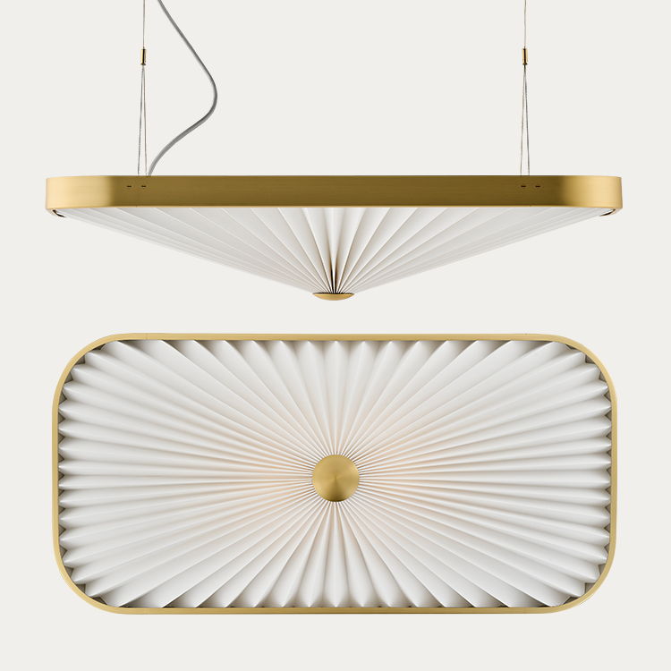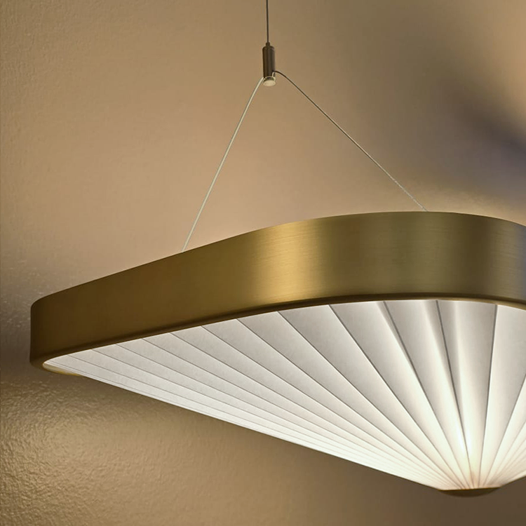 Celine er en hyldest til Designmuseum Danmarks oprindelige arkitektur med rene linjer, dristige kurver og geometri. Ved første øjekast fremstår Celine-pendlen med et enkelt og rent udtryk, men bag dette ligger et kompliceret design bestående af en ydre form i massiv messing og en foldet indre skærm, som følger den ydre form. Denne belysningsløsning er både elegant og funktionel, perfekt til moderne indretning.