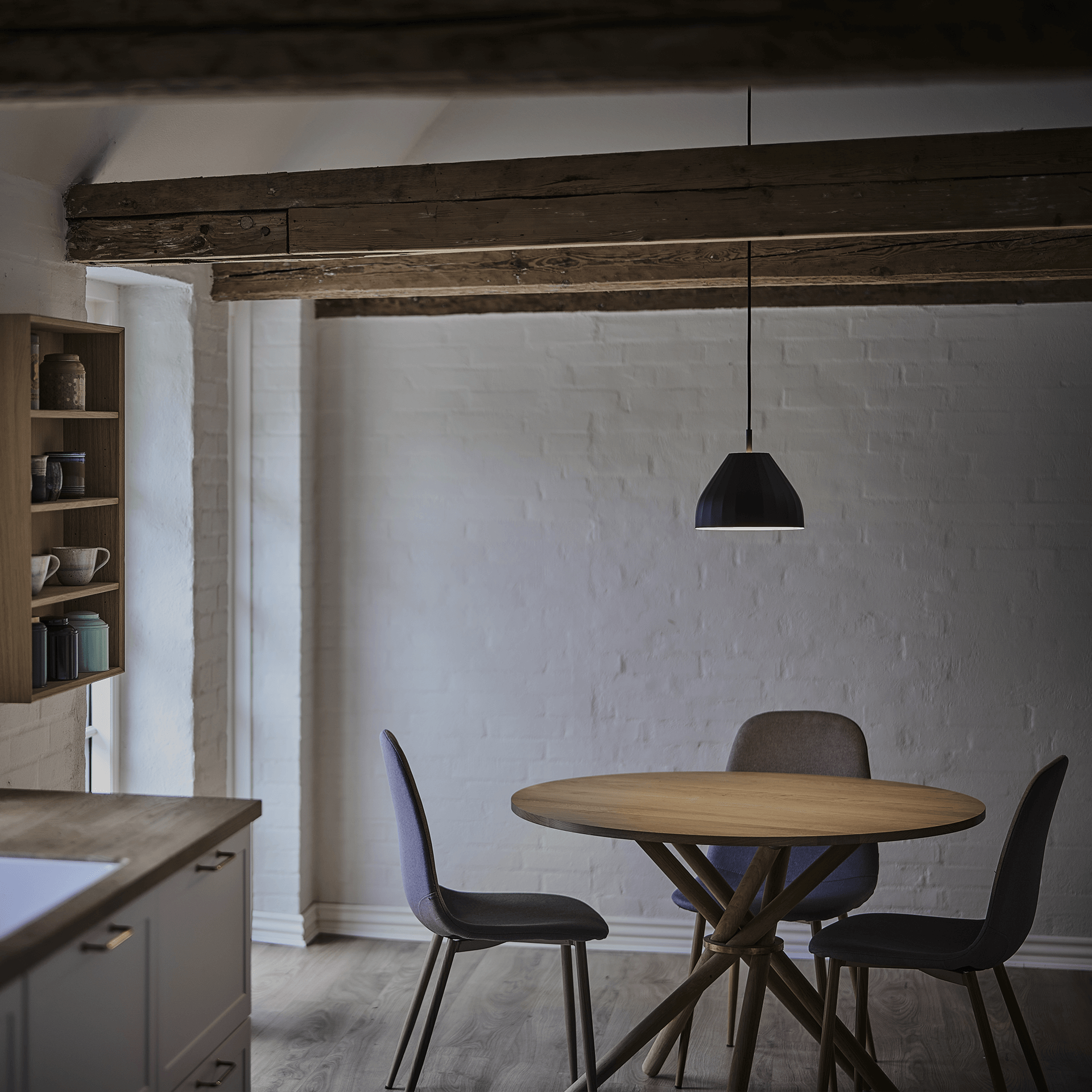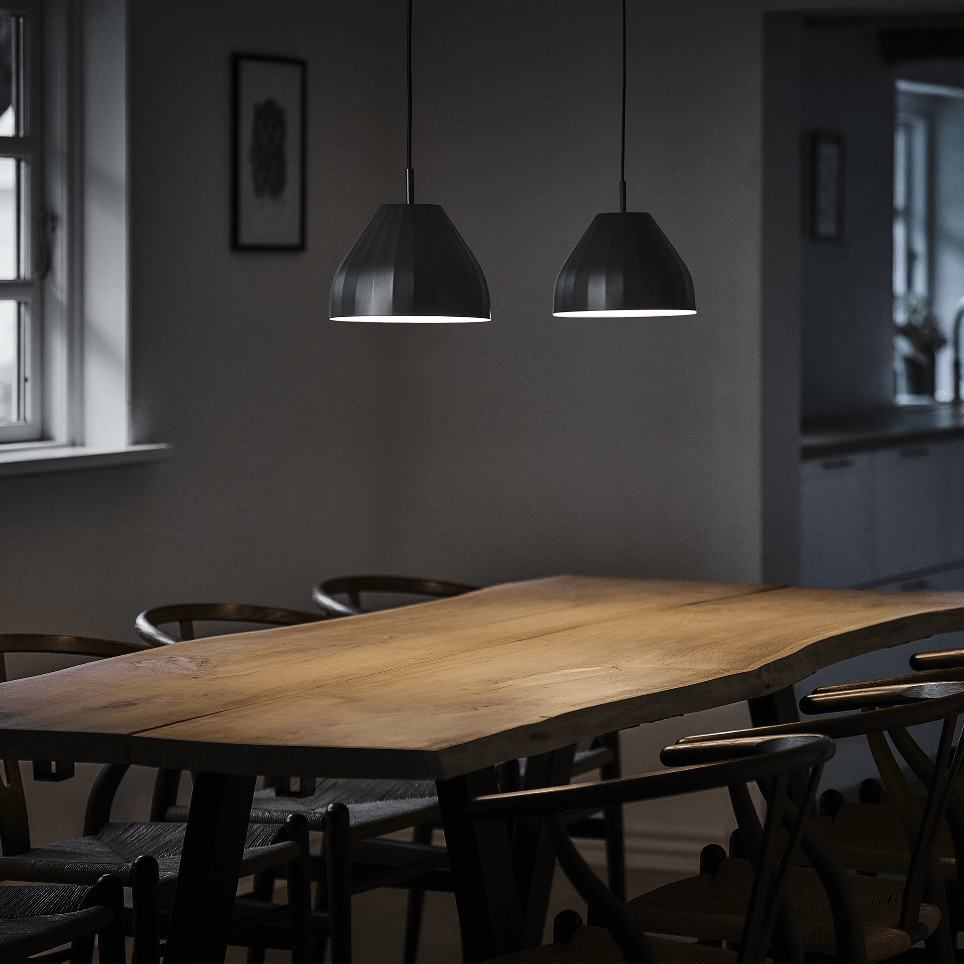 Den franske designer Aurélien Barbry´s fokus har været at finde en ikonisk, men enkel form til en ny Le Klint pendelserie i metal, og derfor ikke i hverken papir eller folie som ellers er kernematerialer i vores lampeproduktion.