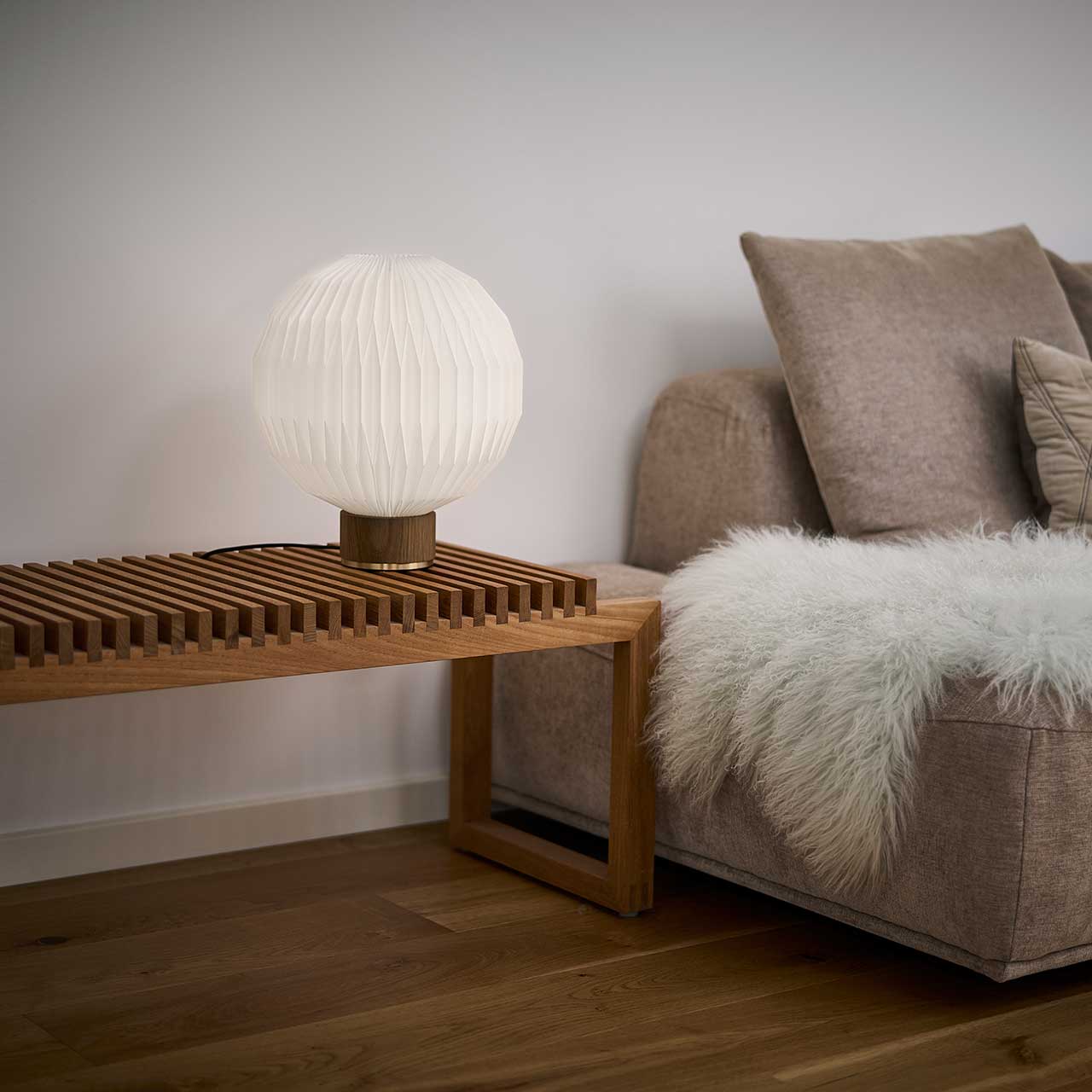 Model 375 er en nyfortolkning af den ikoniske Model 107, der blev tegnet af Esben Klint tilbage i 1942, og lanceret i forbindelse med vores 75-års jubilæum i 2018. Den plisserede skærm er smukt integreret i en base lavet af egetræ og med messingdetaljer. Bordlampen Model 375 fås i størrelserne XS Small, Small og Medium i lys samt røget eg.