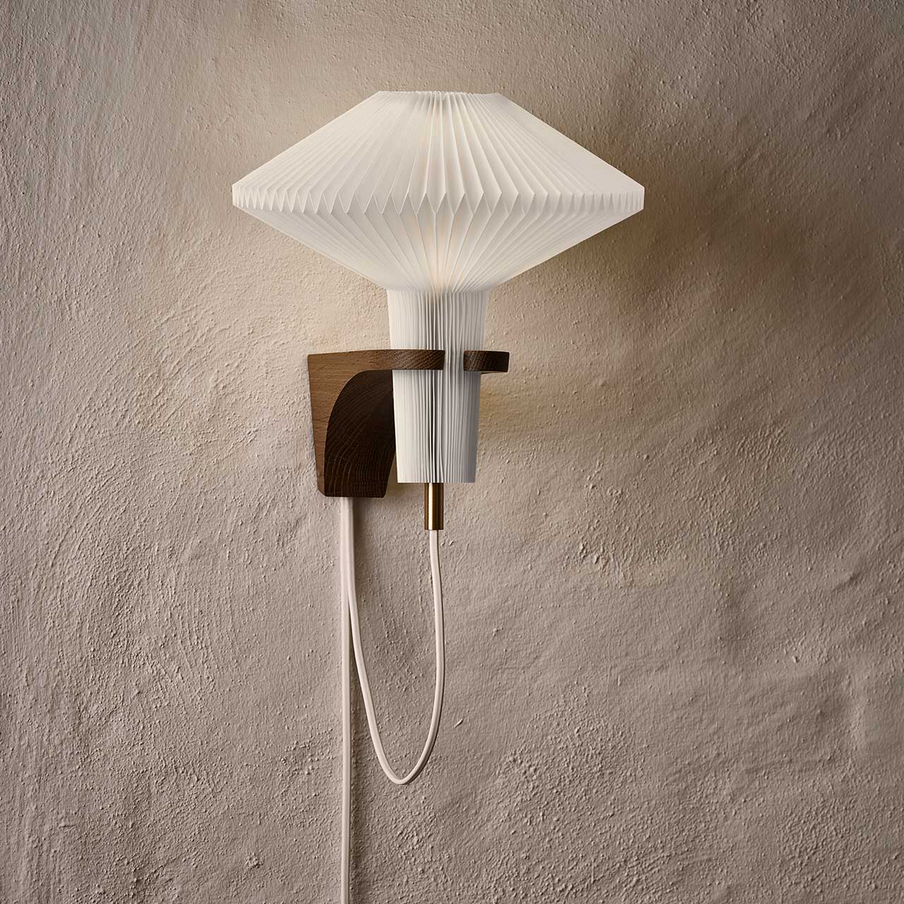 The Mushroom blev designet af Vilhelm Wohlert i 1957 i forbindelse med Nobelprismodtager og fysiker Niels Bohrs æresbolig i København. Lampen blev relanceret i 2019 og har siden været en af vores mest populære væglamper. Det er lampens karakteristiske form med en plisseret skærm udført i hånden, der minder om en svamp, som har været med til at give lampen sit navn. Udover røget eg fås The Mushroom også i lys eg.