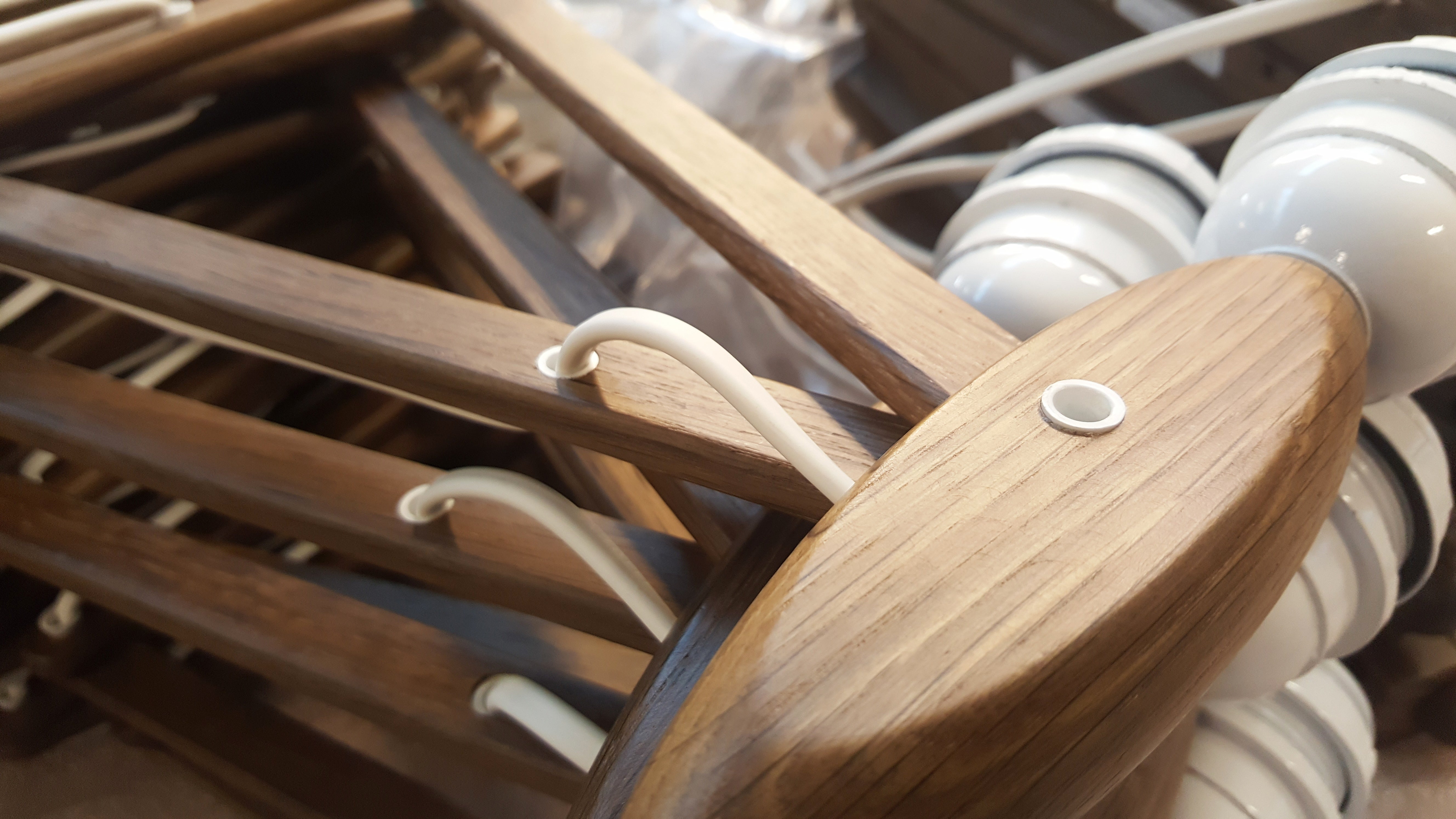 Det er en del af Le Klints DNA og grønne tankegang, at vores lamper skal kunne holde flere år og gerne i flere generationer. Derfor tilbyder vi at fortage reparationer på de fleste af vores lamper, selv på udgået modeller. Et godt eksempel er udskiftning af defekte træ dele på vores populære Sax lampe.