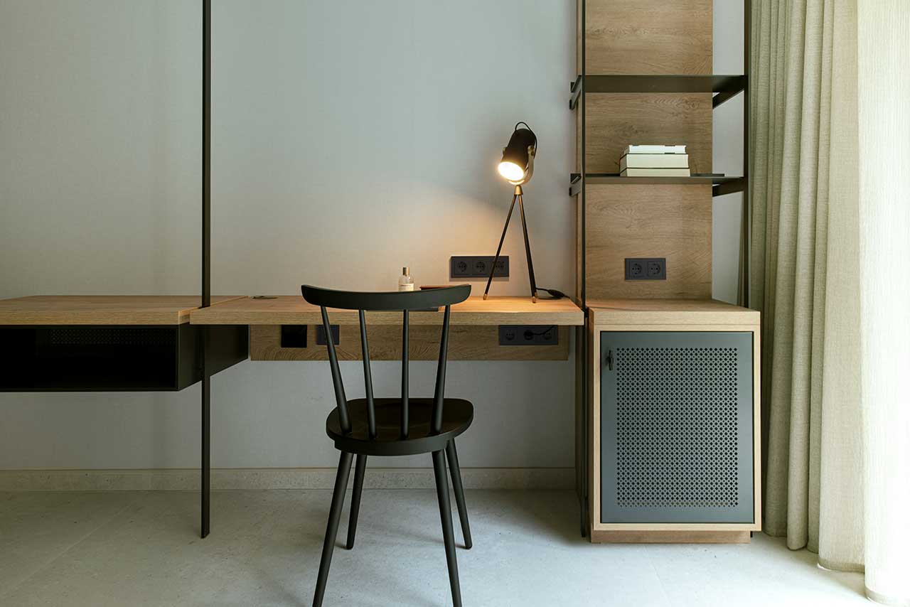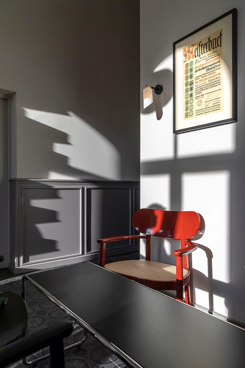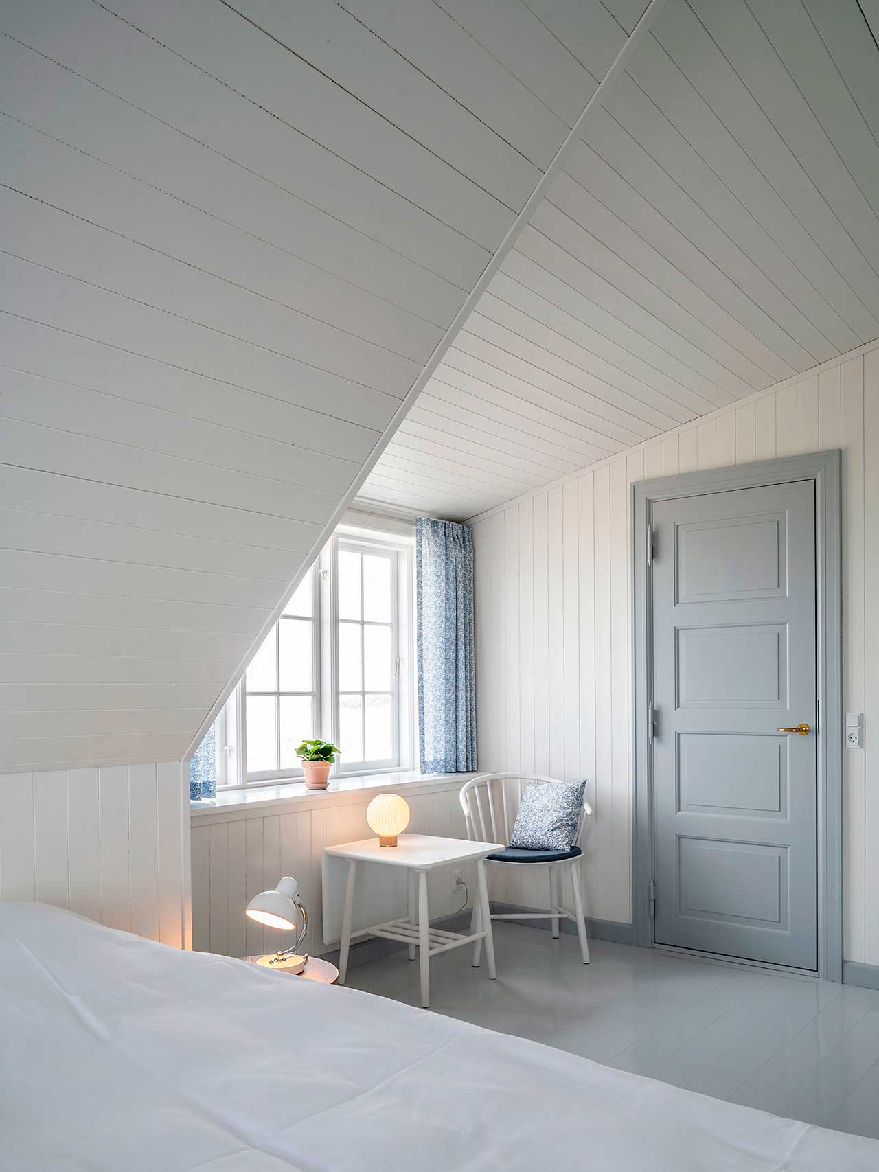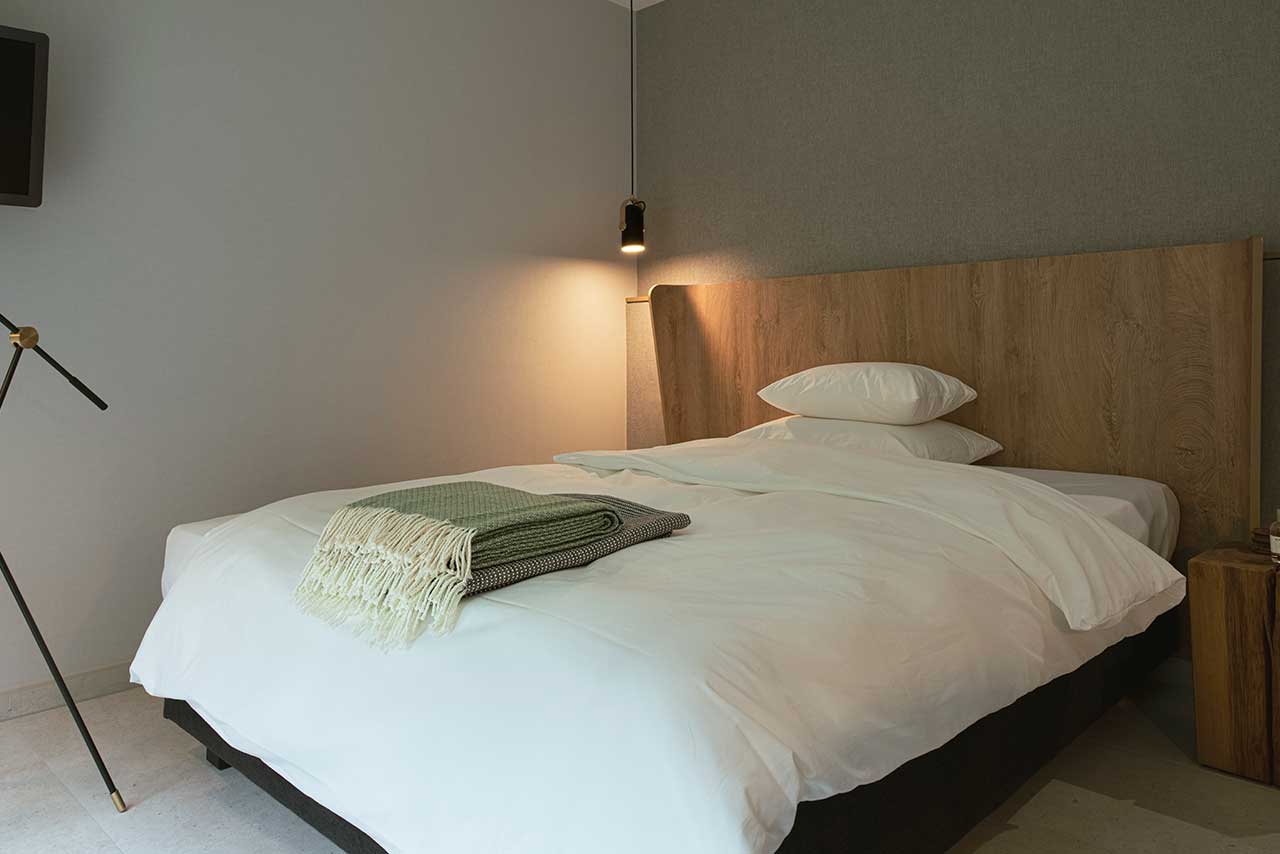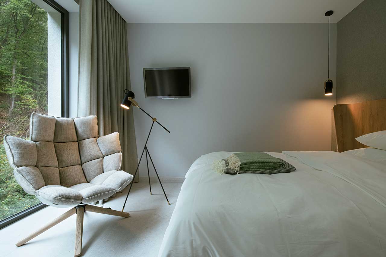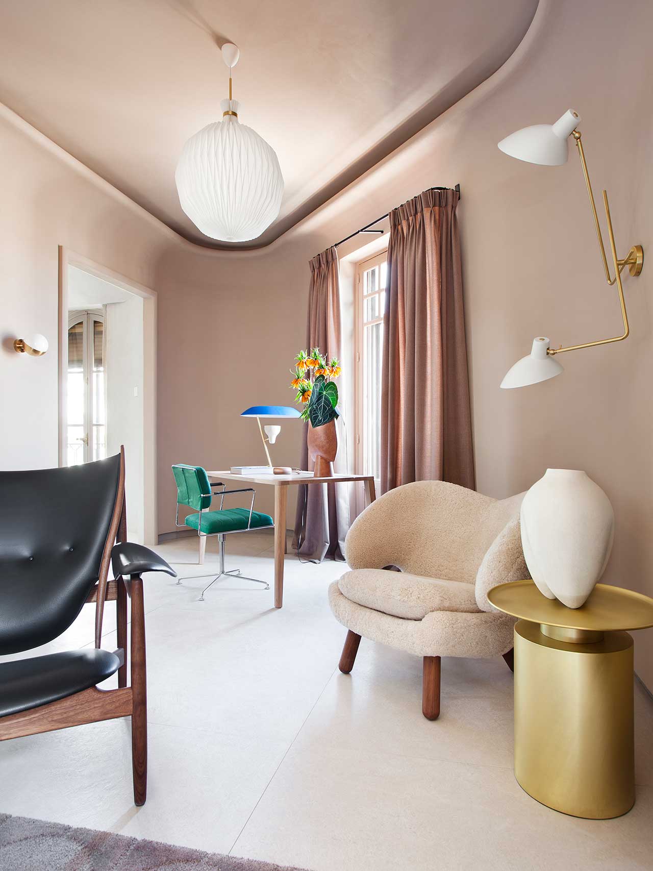 • hotelværelse med gulvlampe fra Le Klint på hotel Odeon i Odense